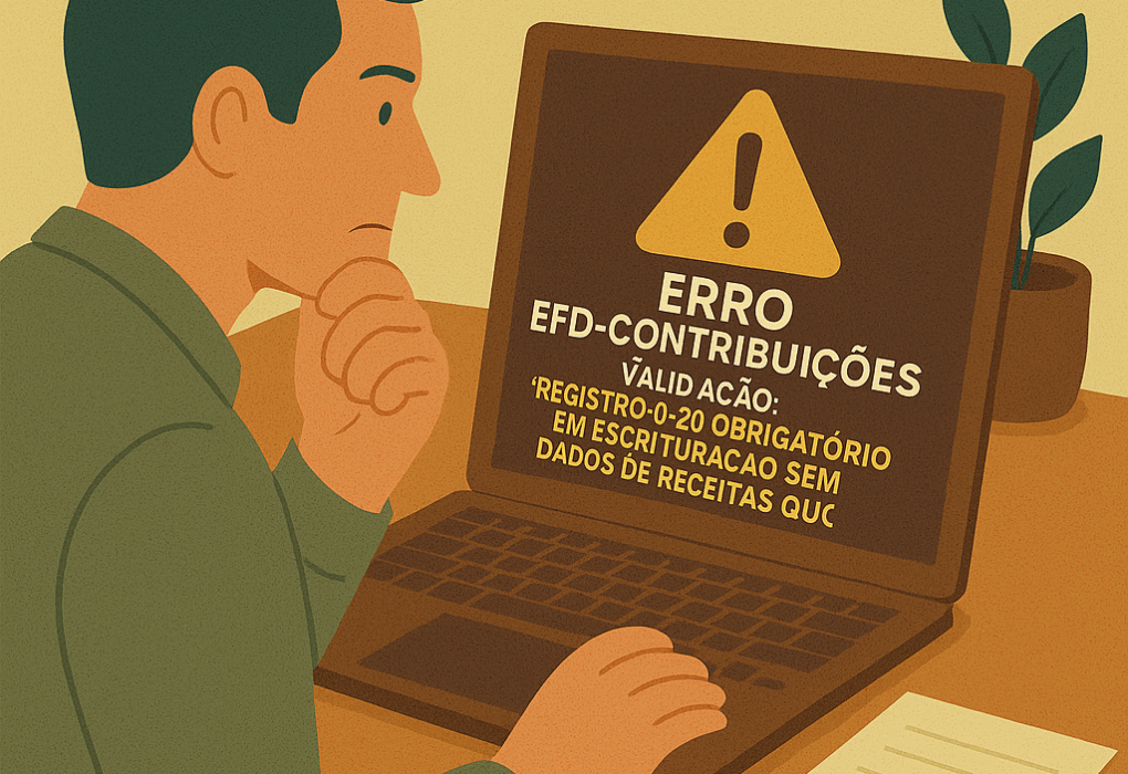 Um dos erros mais recorrentes ao validar a EFD-Contribuições no PVA é: “Registro 0120 obrigatório em escrituração sem dados de receitas ou créditos.” Esse erro aparece sempre que o contribuinte transmite uma EFD-Contribuições sem operações no período, mas sem incluir o Registro 0120, que é justamente o campo criado para justificar escriturações sem dados. Neste…