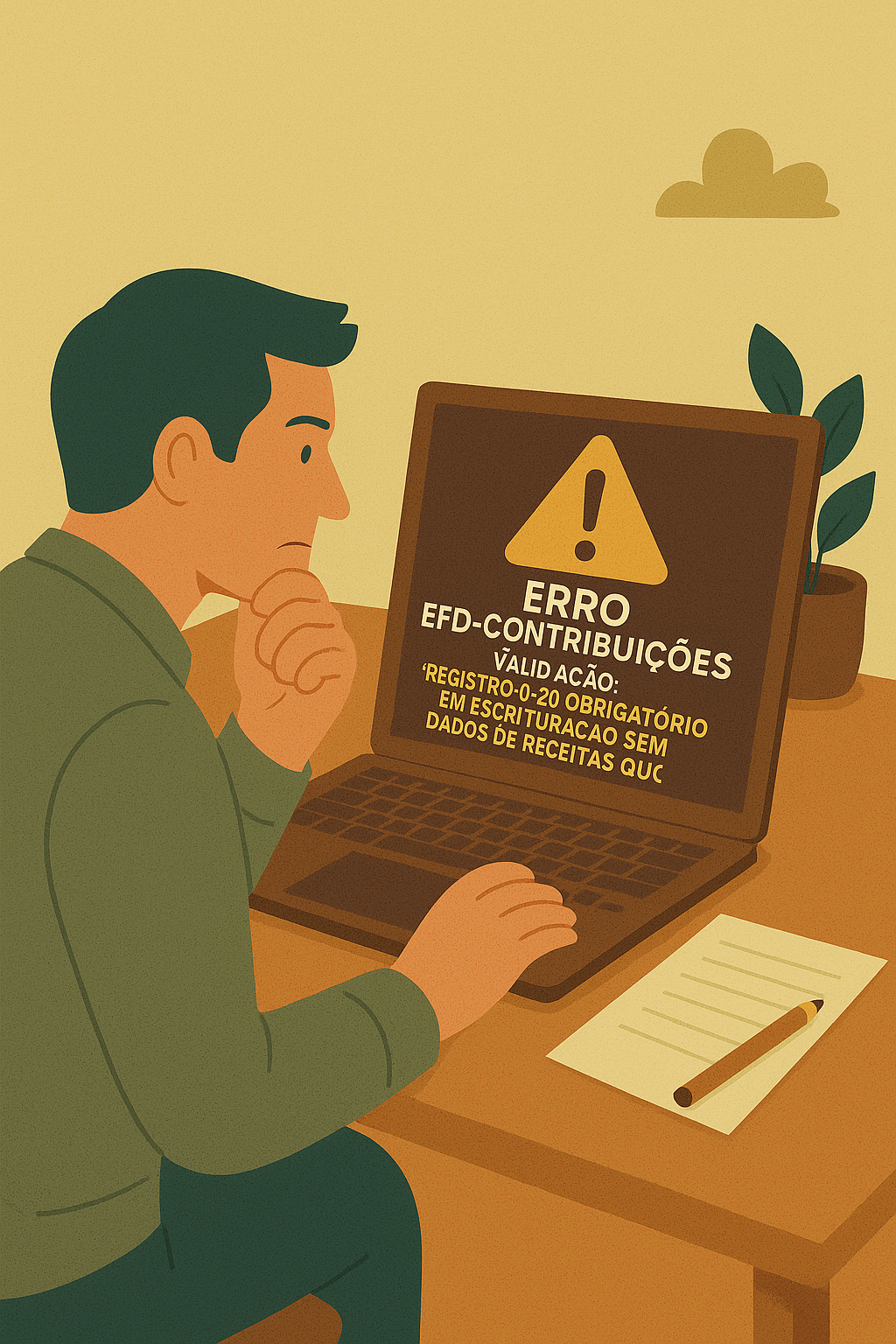 Um dos erros mais recorrentes ao validar a EFD-Contribuições no PVA é: “Registro 0120 obrigatório em escrituração sem dados de receitas ou créditos.”